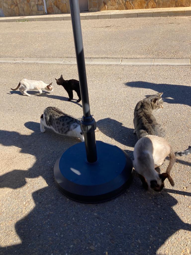 We stopped in Reliegos to refill on coffee and to have something to eat. There was a little bar/market that boasted about having the best bocadillos on the entire Camino, so naturally we had to try. They were pretty good, but the best? It’s hard to argue about the best when the bocadillo by nature is awesome anywhere. The most remarkable thing about this little bar was the number of cats hanging around the outside tables. The picture above records about one third of the cats in the vicinity.