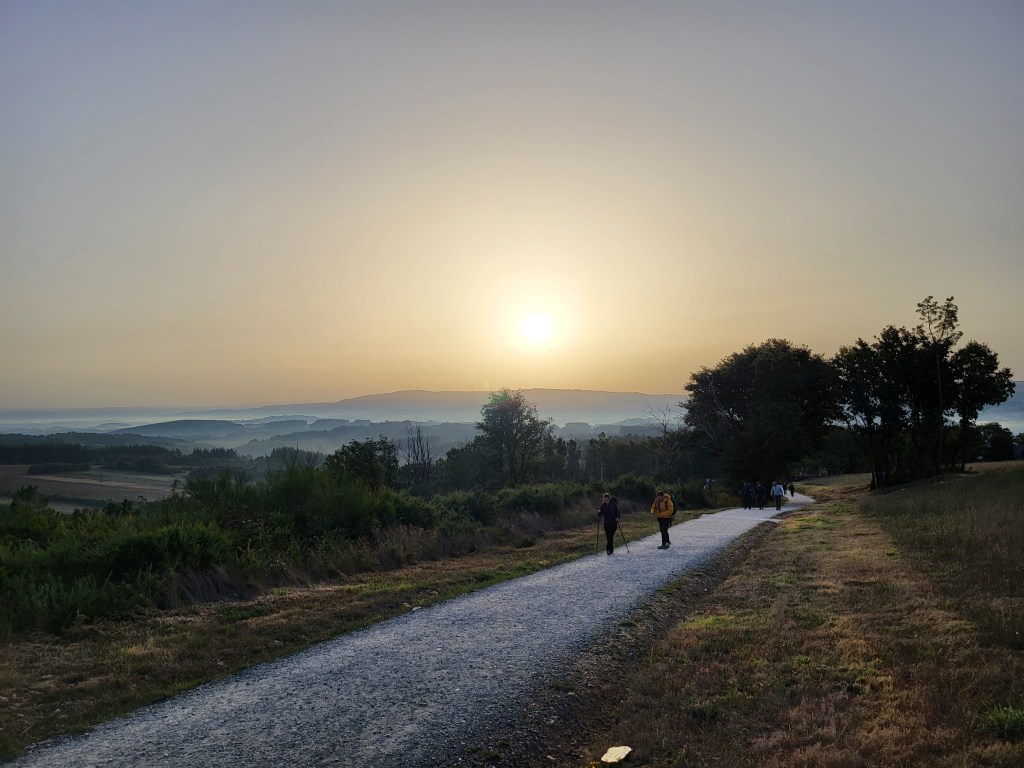 With the decision to walk on to Santiago made, the consequences of that choice were quickly revealed leaving Portomarín. There was large crowd of people walking through the middle of the town, and the first coffee shop had a line of about 30 people. I moved on to another option near the edge of town, the line here was only 10 people, so I waited. Patience is an area of constant growth opportunity for me. After a 27-minute wait and with coffee-to-go in hand, I walked out of town.