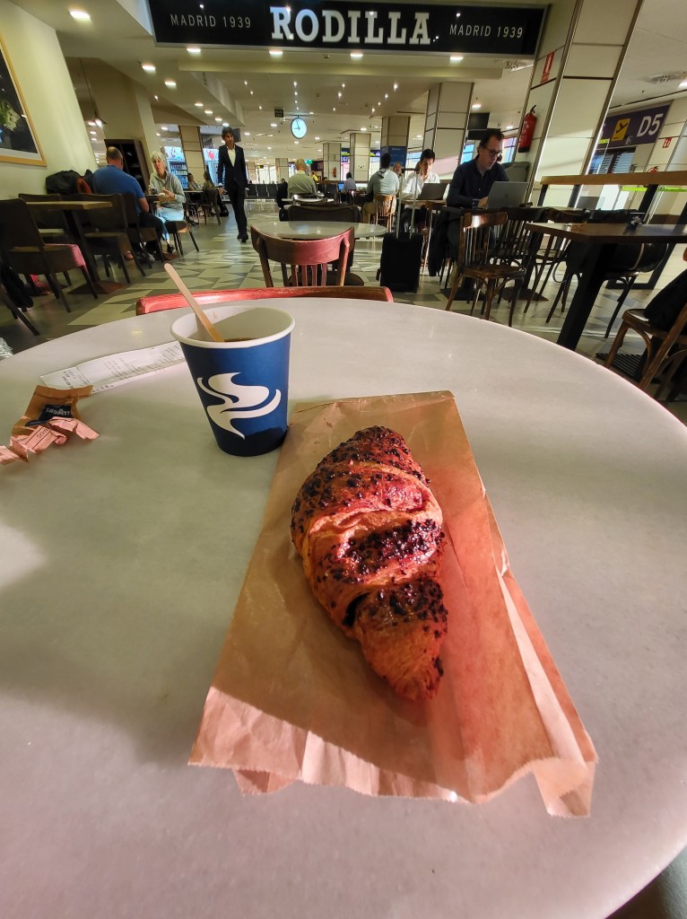 - Navigate the airport, make it through customs, and stop at the first café for coffee & napolitana de chocolate (tactical success # 2).