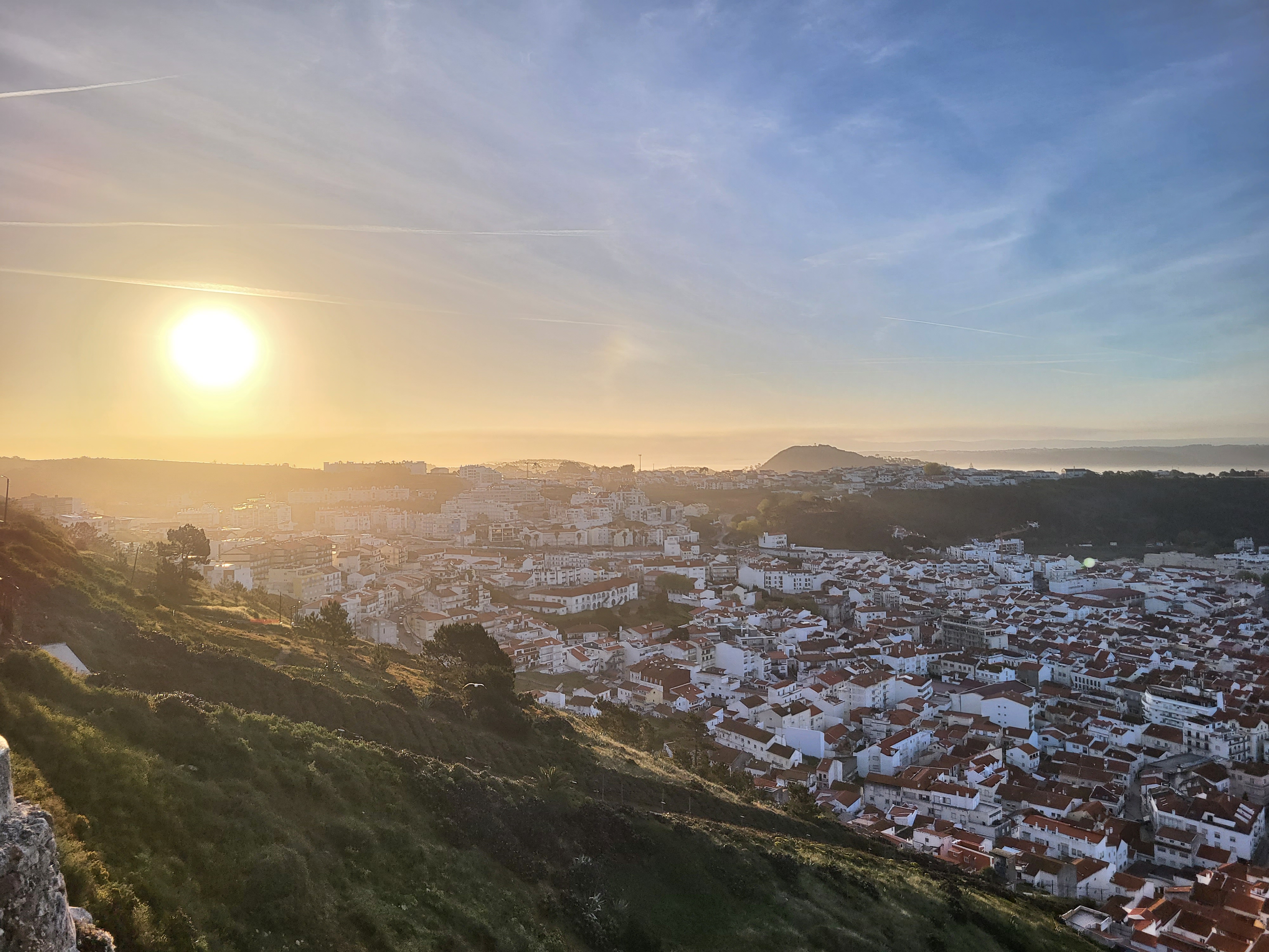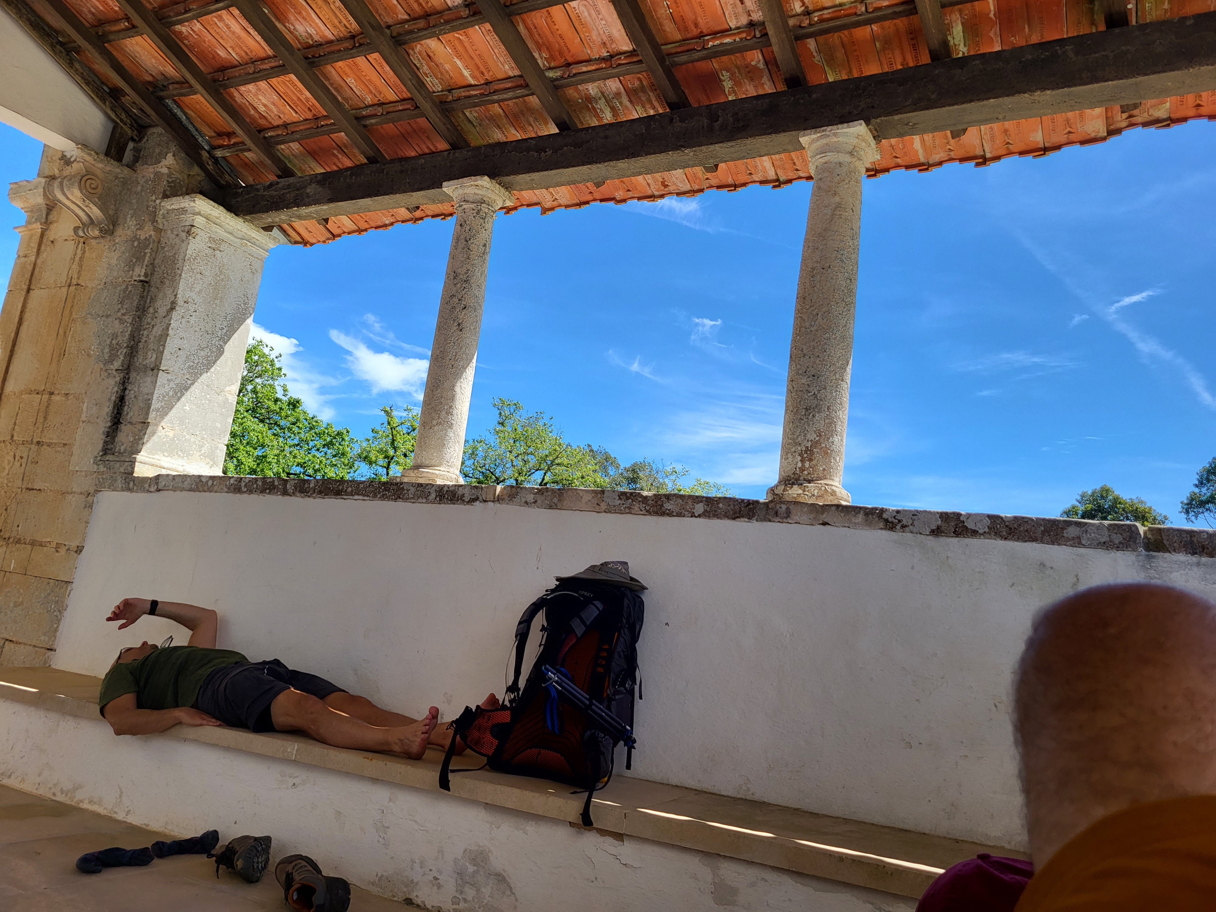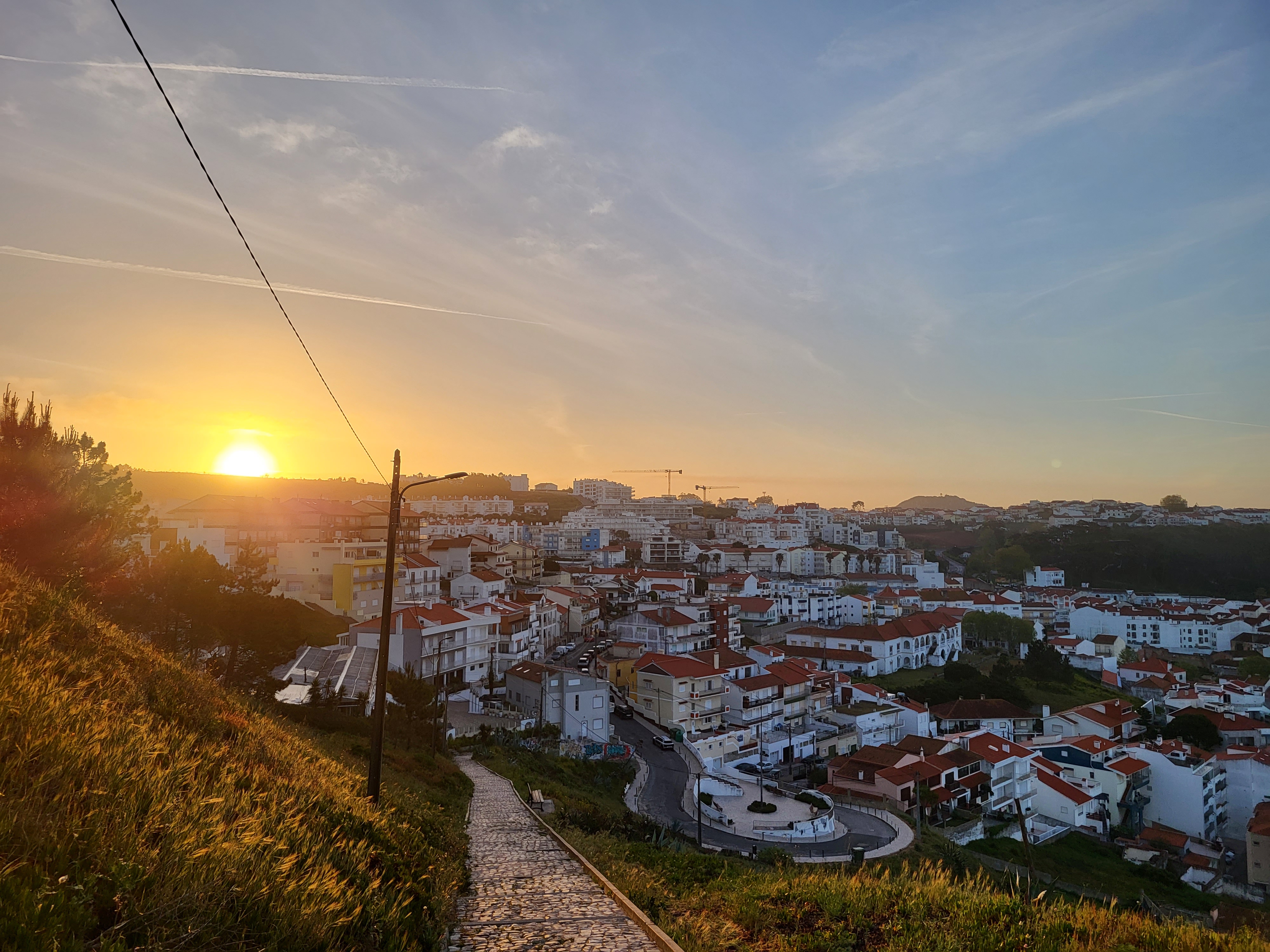 There was probably a shortcut from the Low Town to the Caminho de Fátima but we chose not to take it. Rather, we walked (I did the broke-knee shuffle) back up to the Old Town so we could start at the 0.0 km Marker, the official starting point. We stopped on the way up to take advantage of the swing that was off to the side of the path near the top. Yesterday it was too busy with teenaged girls making TikTok videos for us to have a chance without it being creepy. The trail and the swing were unoccupied this morning as the sun was coming up.