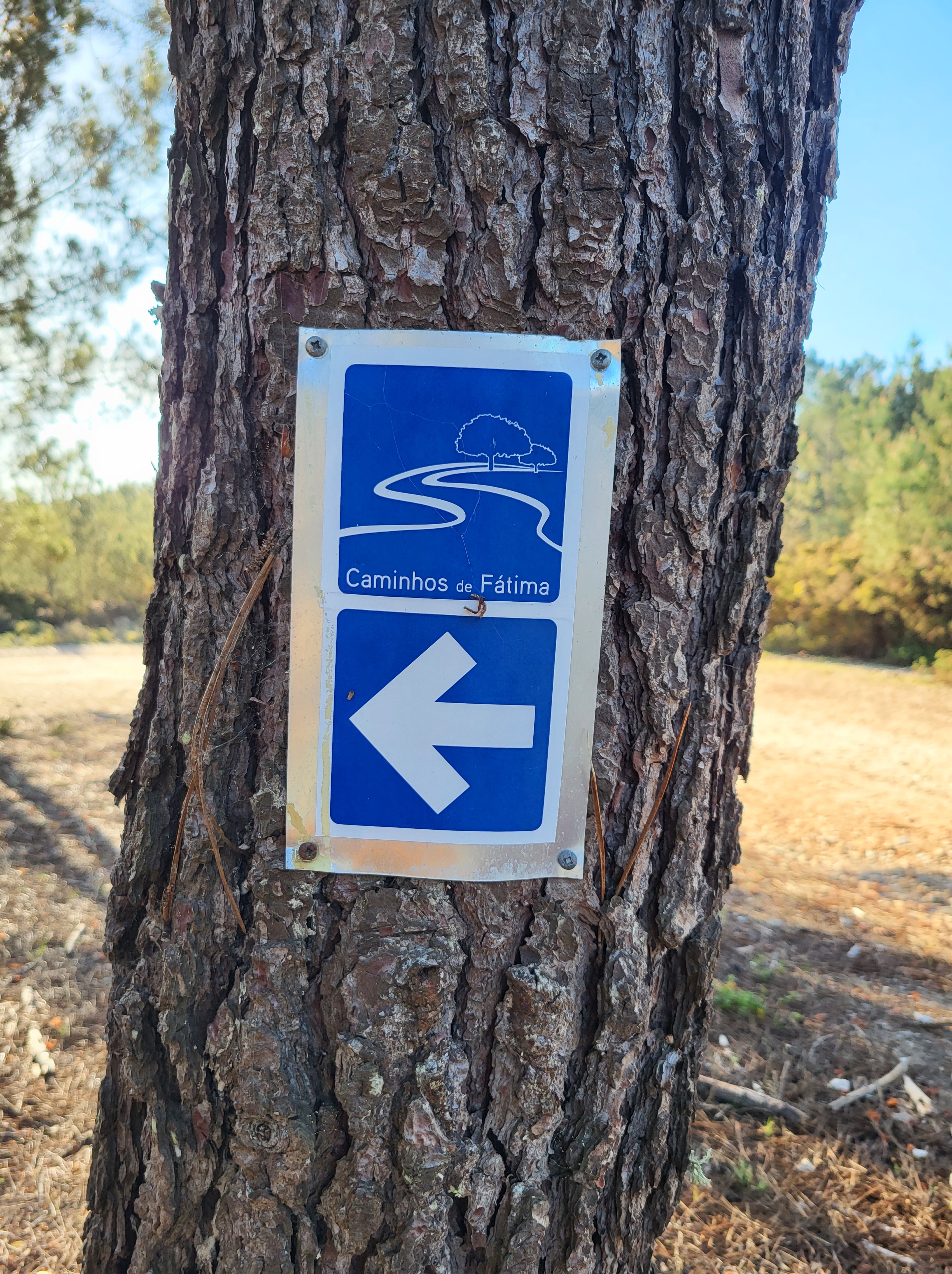 At the top, we found the starting marker and started our walk east towards Fátima. Four blocks into the walk we stopped for coffee and pastries (you know the rule). Properly fueled, we set out on pilgrimage. Finding our way out of town was a challenge, there weren’t too many markers, but there were enough. After a few kilometers of walking city streets and on a straight highway, we came across a sign that pointed us into the woods and towards Fátima. We were on the way!