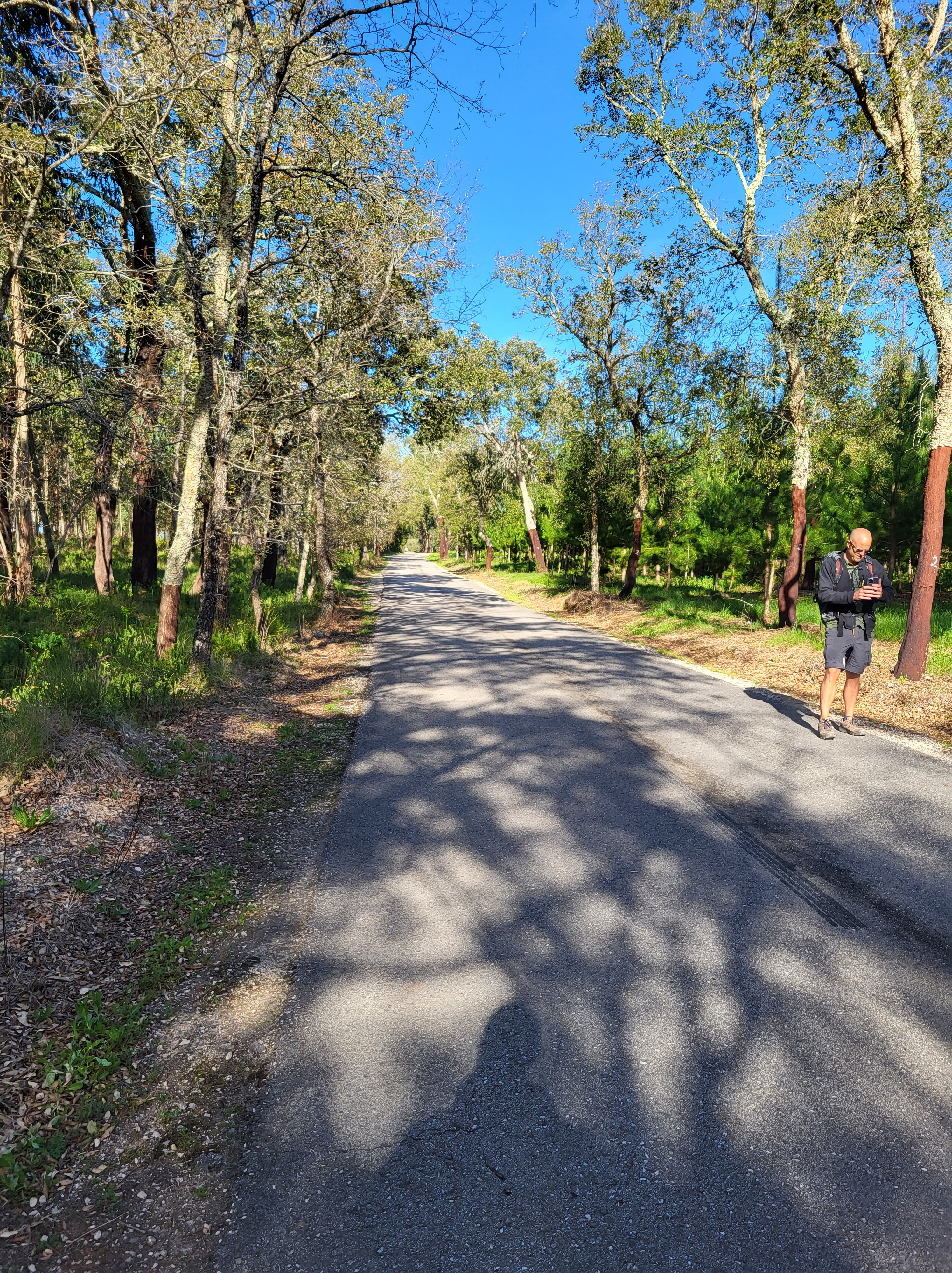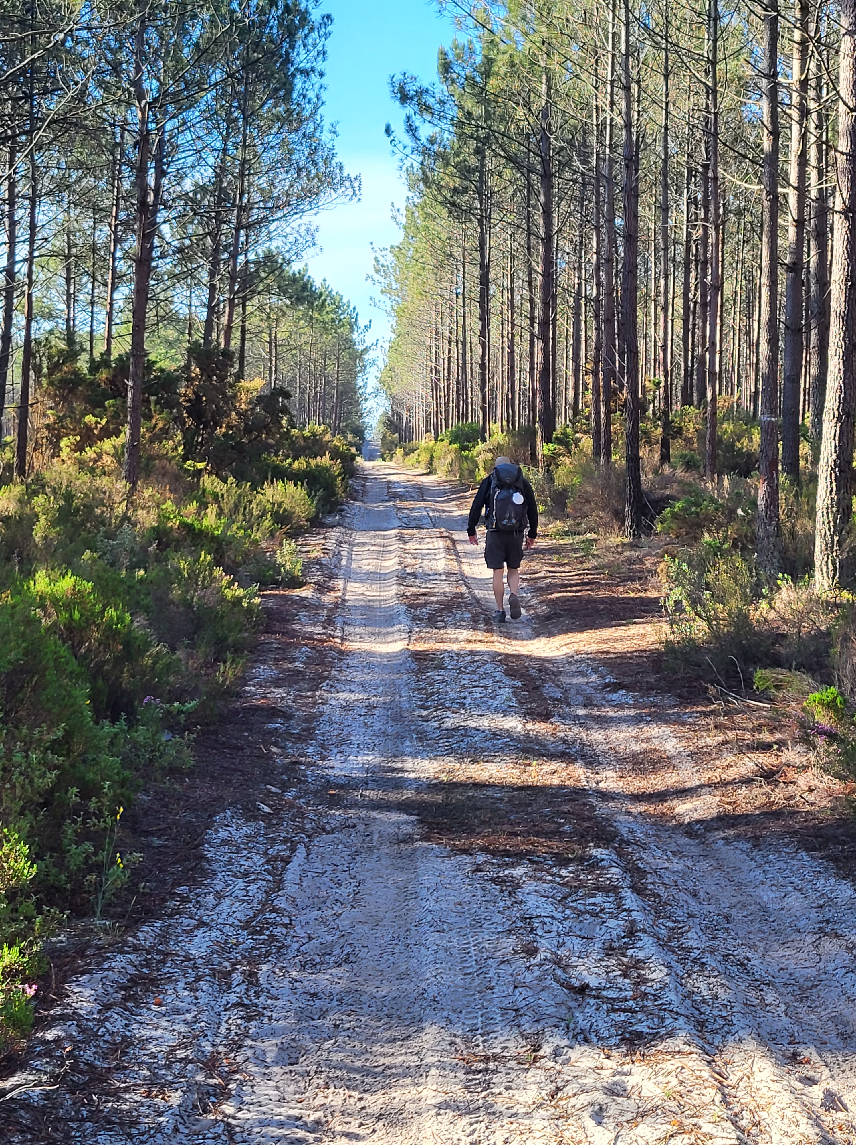 The dirt path wound its way through a nice pine forest. After a couple of kilometers, it turned into a eucalyptus forest. It was like walking through an Essential Oils store, the smell was wonderful. Another kilometer in and the dirt path turned into a loose sand path. It was punishing, if you’ve ever walked any distance on loose sand, you know what I mean. Fortunately, after a kilometer or so, we were back on a normal dirt path.