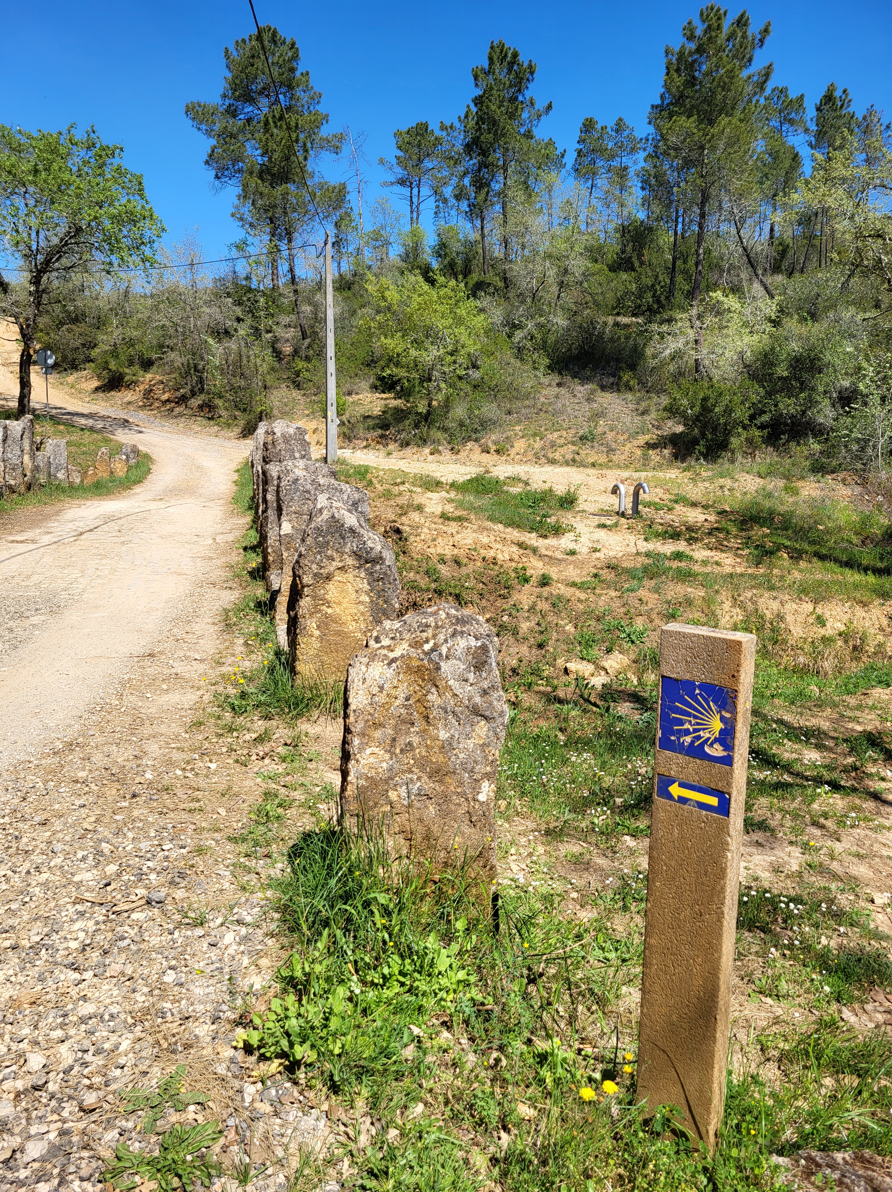 On the outskirts of Tomar, the Way joins the Nabão River and follows it for a few kilometers. It’s a good trail, passing a couple of waterfalls and a few places to stop and enjoy the beauty. When the path left the riverbanks, it resumed the normal, hilly walk through the forests of pine and eucalyptus.