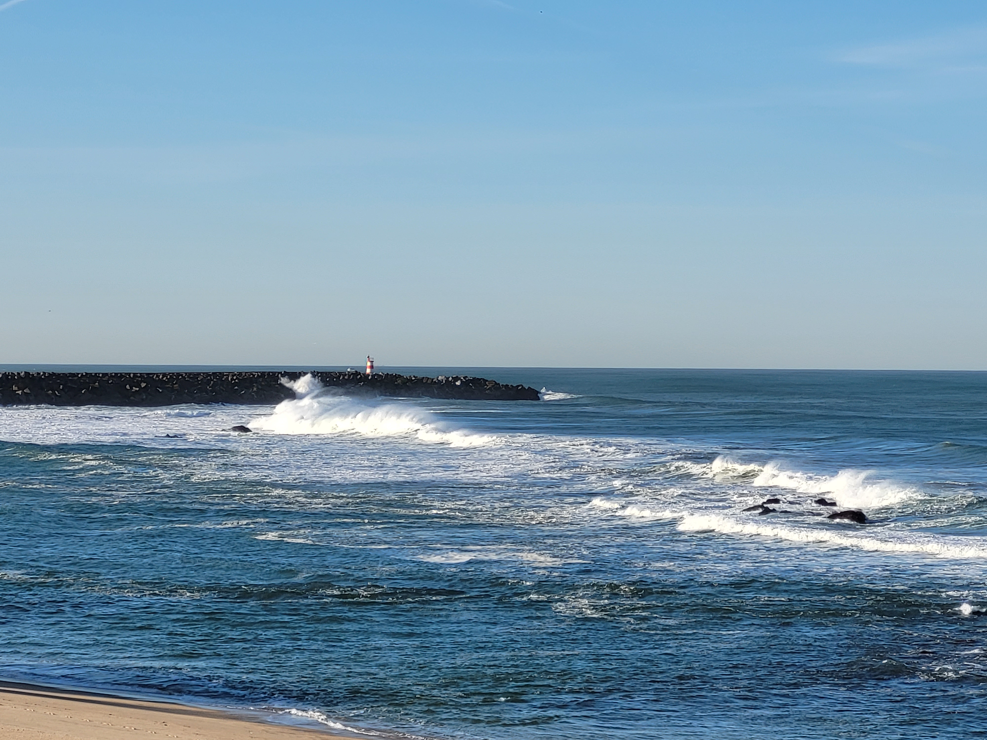 What I learned about Vila do Conde in the short time I’d been there was that it is a touristy, beach town. As is its sister city, joined at the hip, Póvoa de Varzim. I’d be willing to bet these places are hopping in the summertime, but not so much on a cool April morning. The walk through both towns was mundane. Then in Póvoa, the Way turned 90° to the left and straight to the ocean, my path for the foreseeable future.