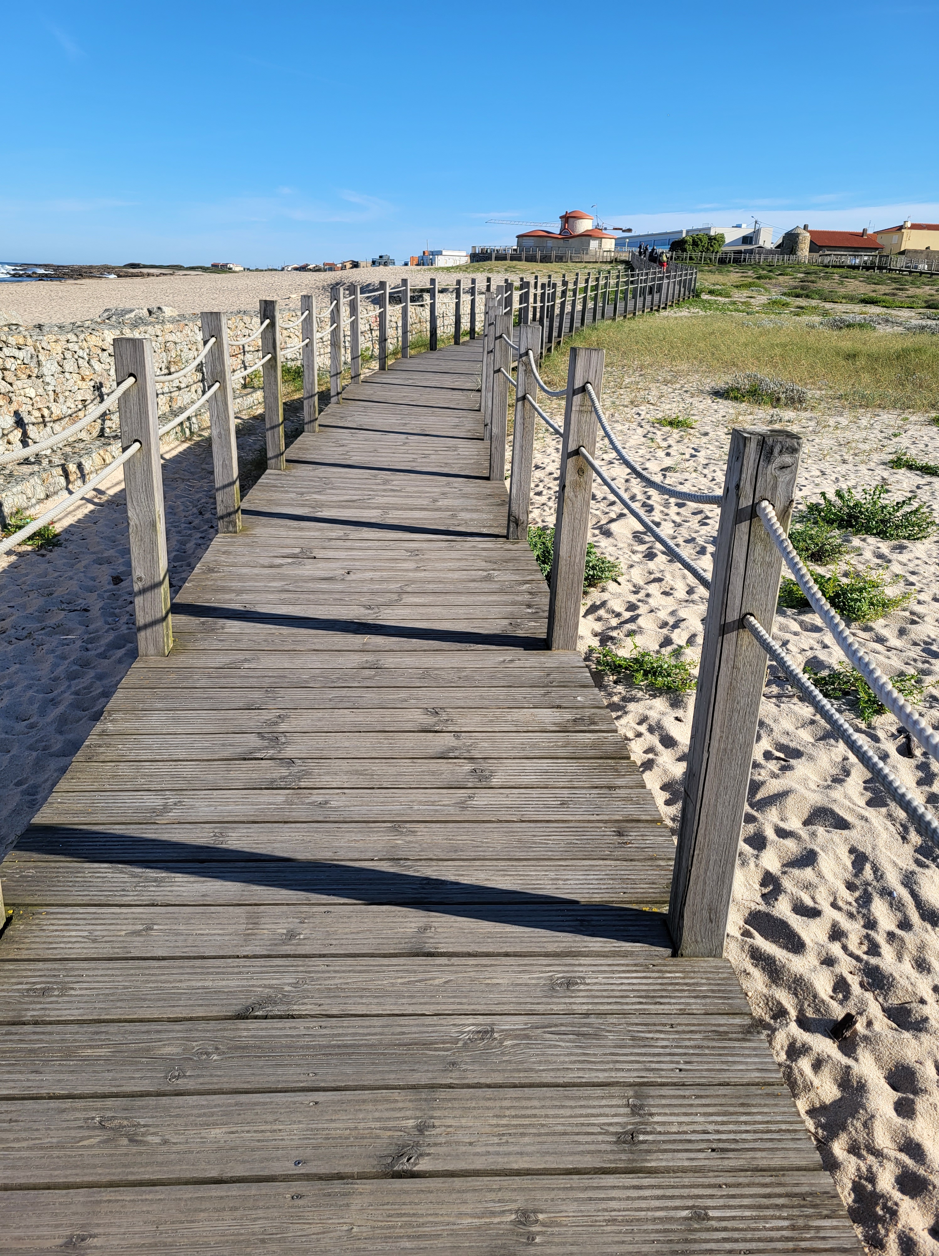 Leaving the synagogue/café, I continued my walk up the coastline. It was beautiful and fun, and the weather was great beach weather. Not far past the café, the boardwalk turned away from the coastline and bordered a golf course(s) for several kilometers. It made me question my life choices; golf has been a good part of my life, and here I was lumbering in futility with a backpack on back headed for a faraway destination. I could be walking on well-manicured grass with a different kind of pack on my back, chasing a little white ball in futility. I vowed to play more golf when this pilgrimage was finished.