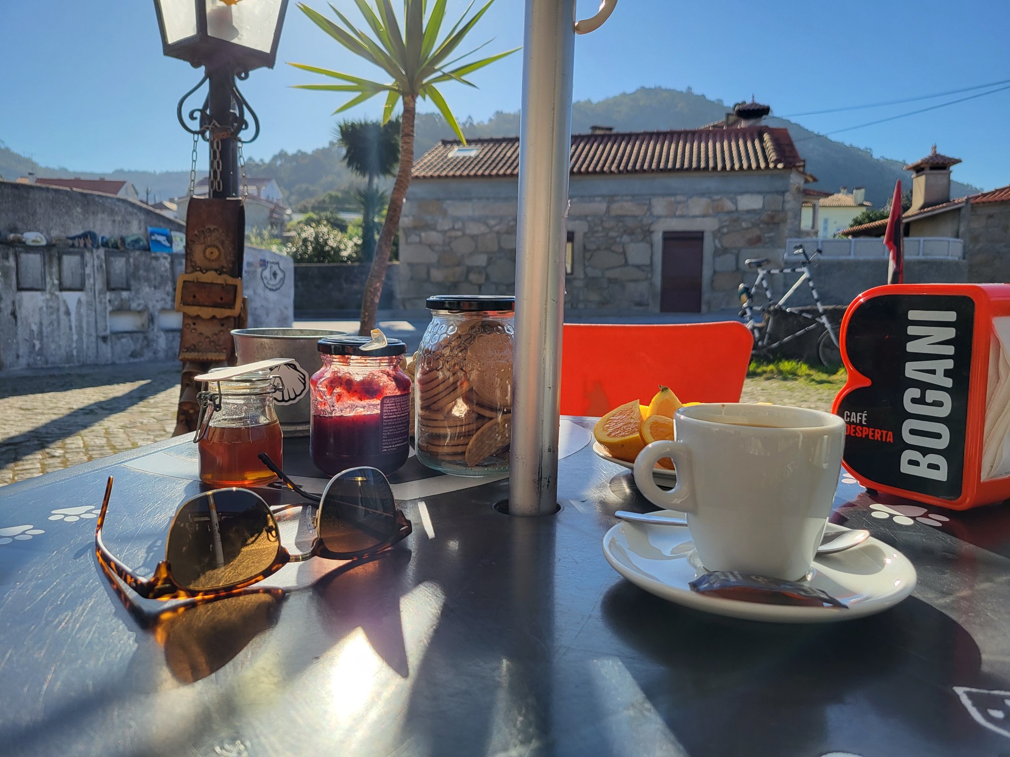 I took the bait and left the Way. I carefully counted the steps (one of my strides is roughly equal to 1 meter) to prove the theory above. This walk should be 100 strides. It was 119, not too bad. And the Café Lampião appeared to be open. A double win.