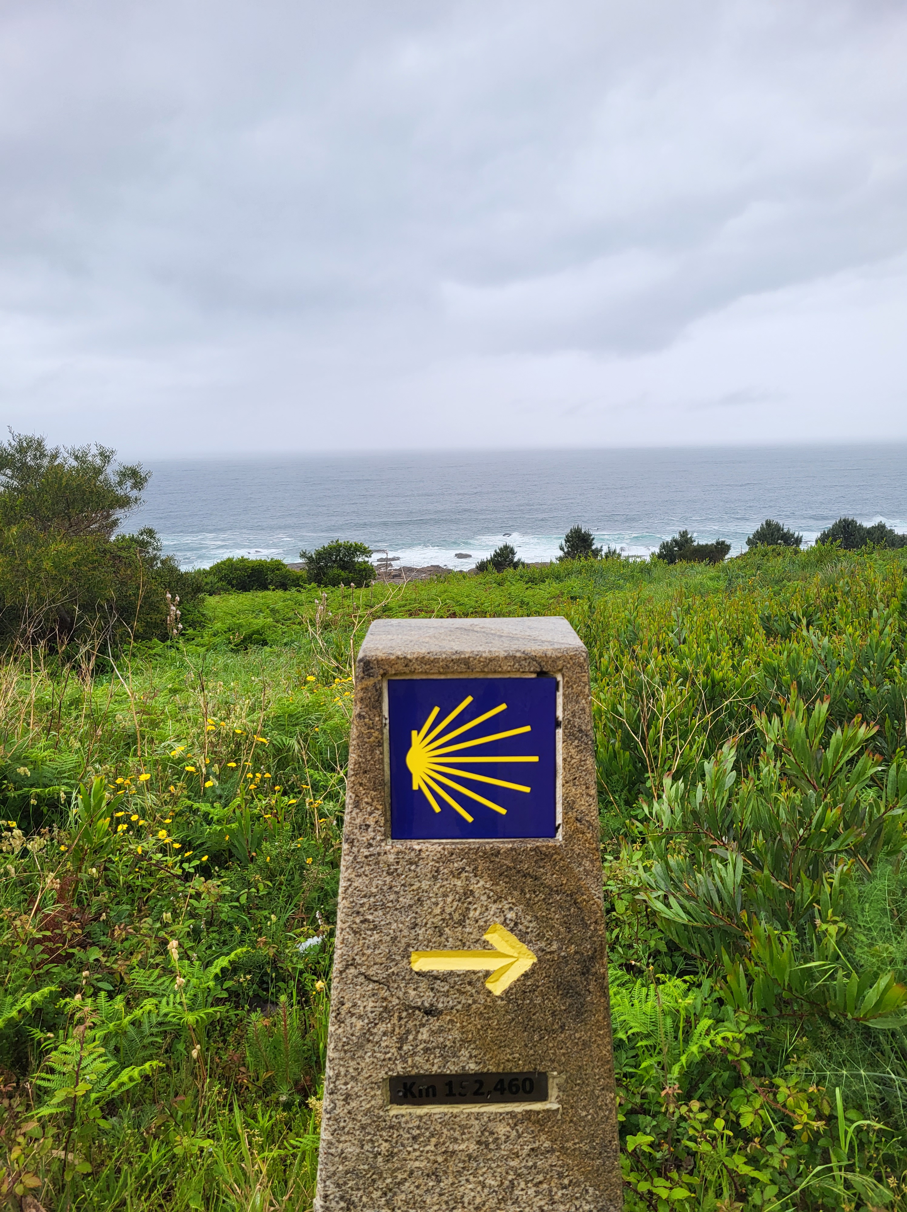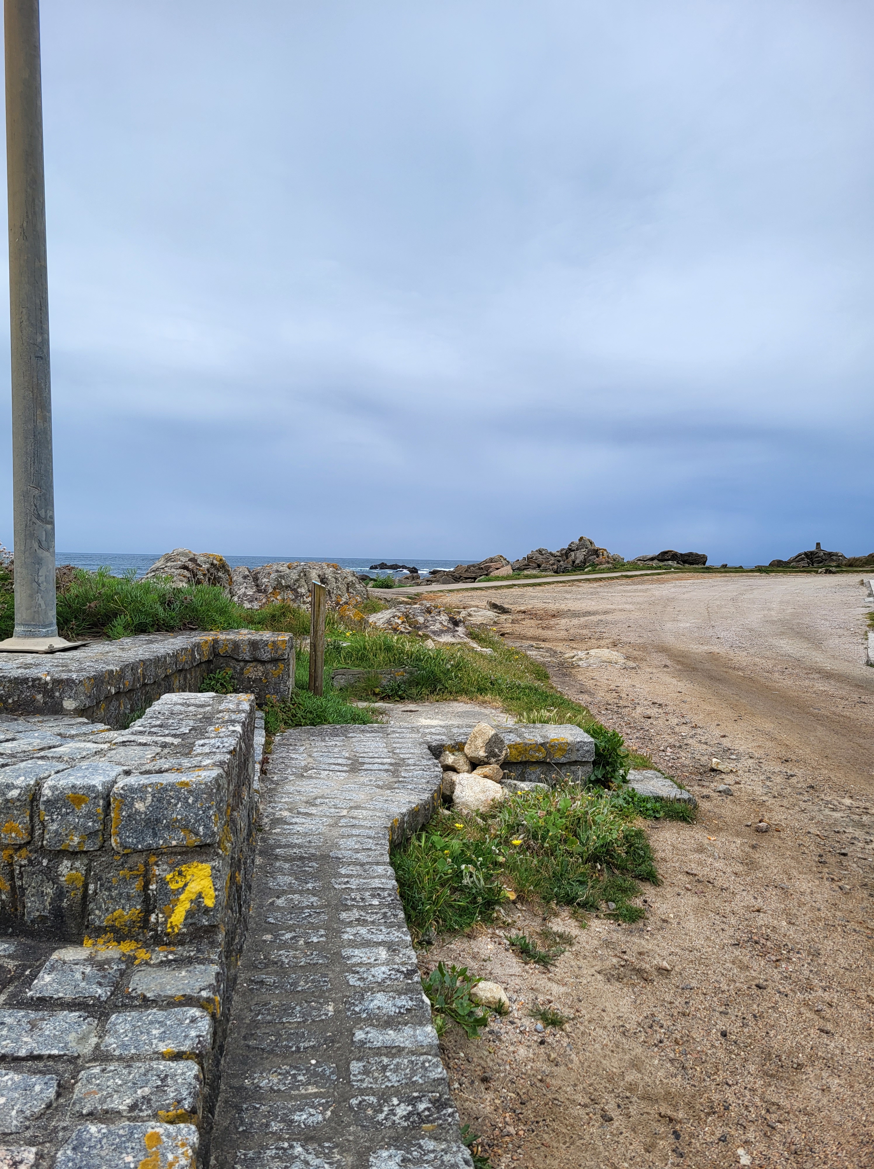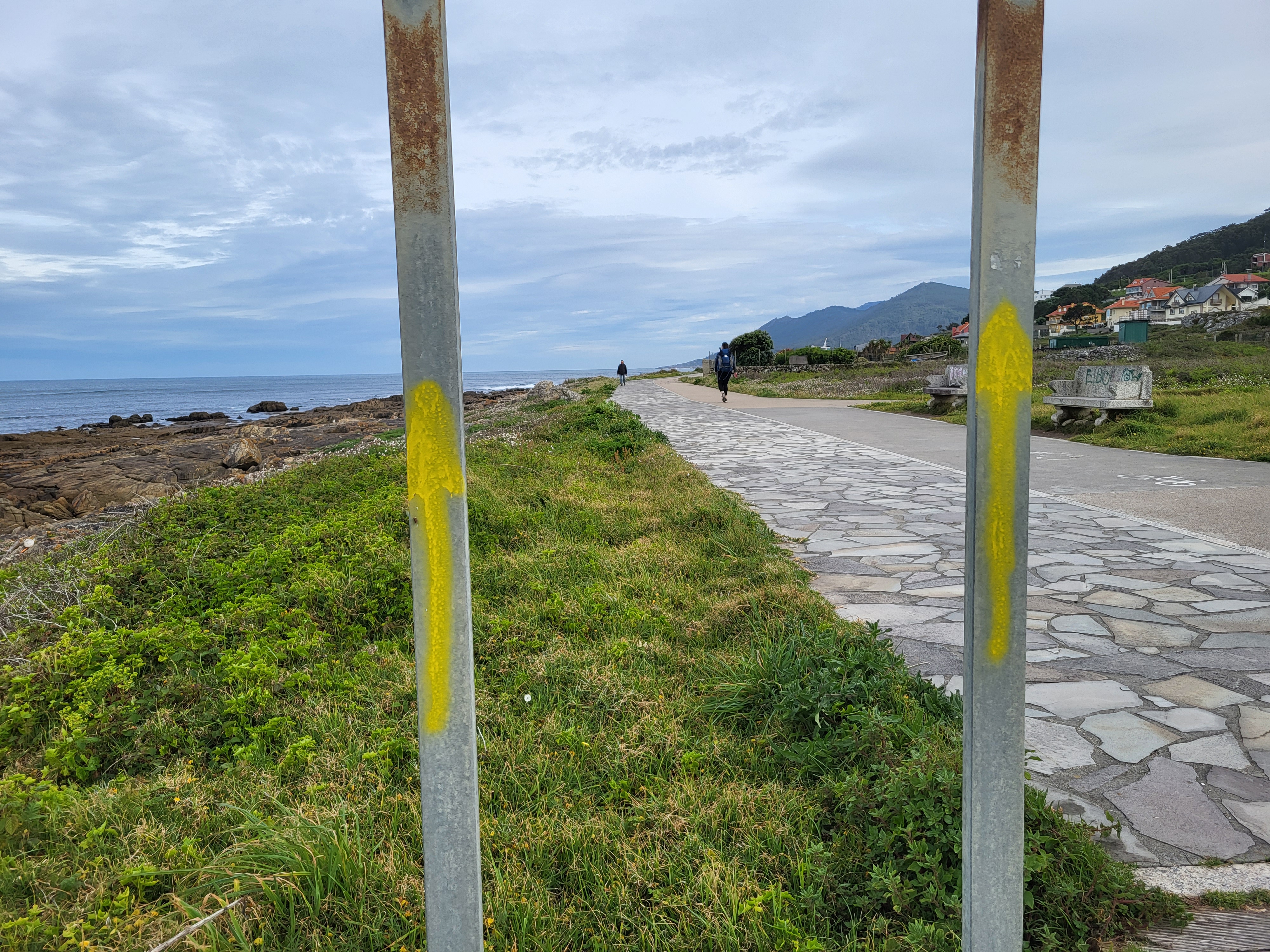 My first town in Spain was A Guarda, a decent sized coastal town. I celebrated the familiar country with a café americano and a croissant. I sat at the sidewalk table and watched the waves roll in, this was a nice-looking town, and I was pleased to be in Spain. Halfway through my second cup of coffee, I remembered that rain was in the forecast today and I wanted to get as close to “home” as possible before the afternoon rains started. I chugged the coffee, paid the 2€ bill, and hit the trail.