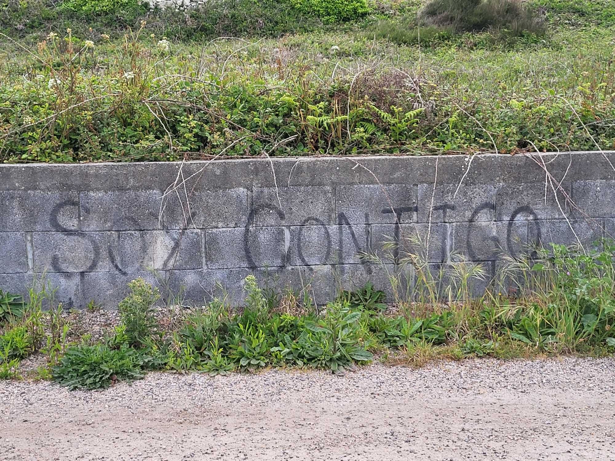 As I walked towards A Guarda, head down and deep in thought, I paused and looked to my right. Coincidentally/Serendipitously/Miraculously there was graffiti on the cinder-block wall: