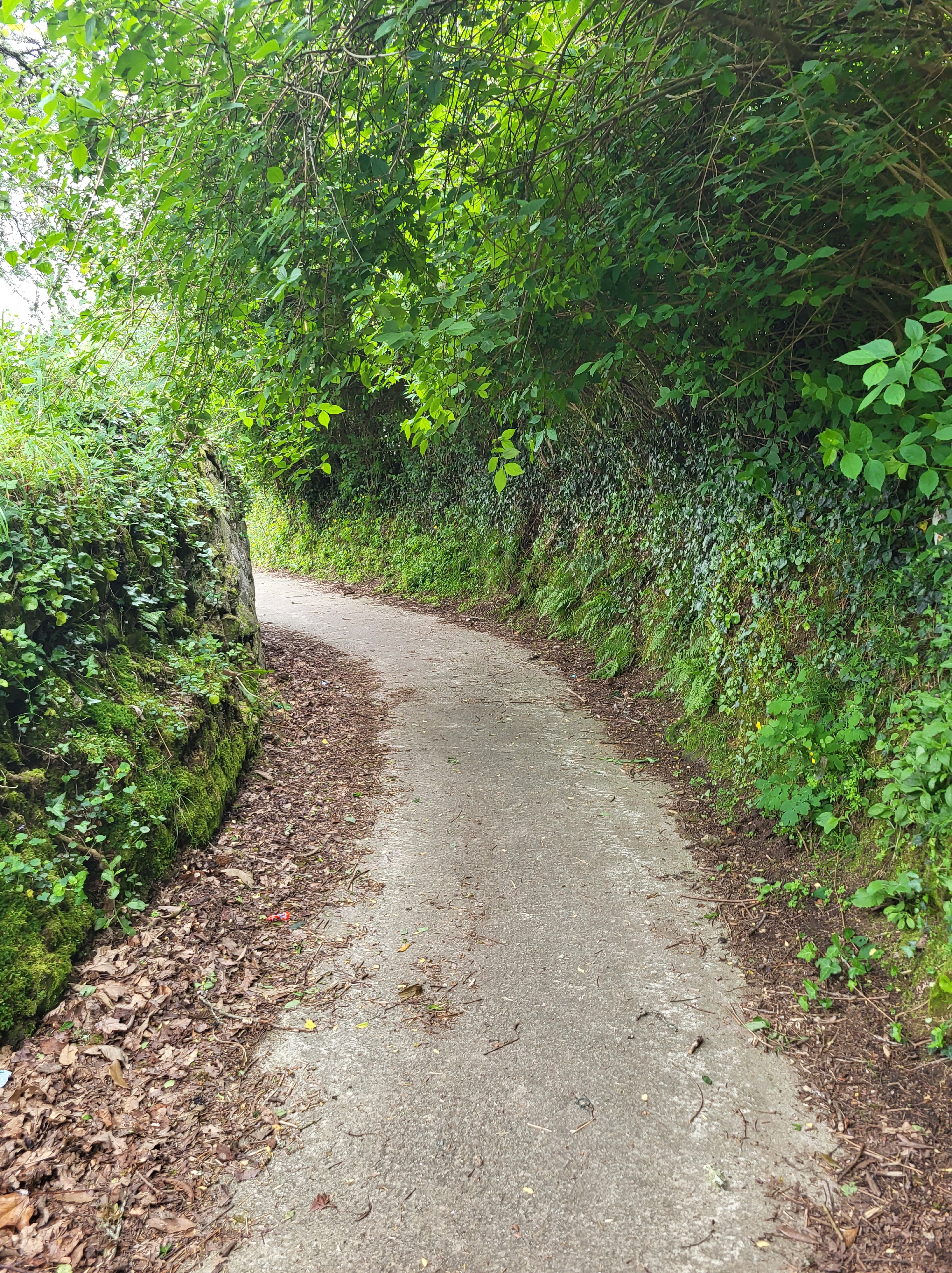 When I finished lunch, I went back out on the Way. Outside the café, there were 3 possible paths to take – the one from whence I came, the continuation of that one on a shady, level road, and another, perpendicular to this road, and straight uphill. The Pollyanna optimist in me turned left, and down the shady, level lane. Someone whistled at me and redirected me to the uphill path. Dang it…