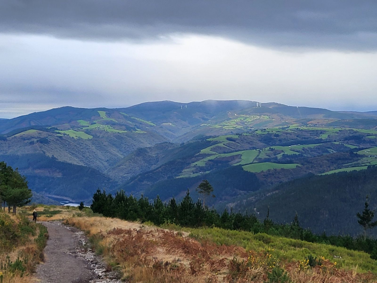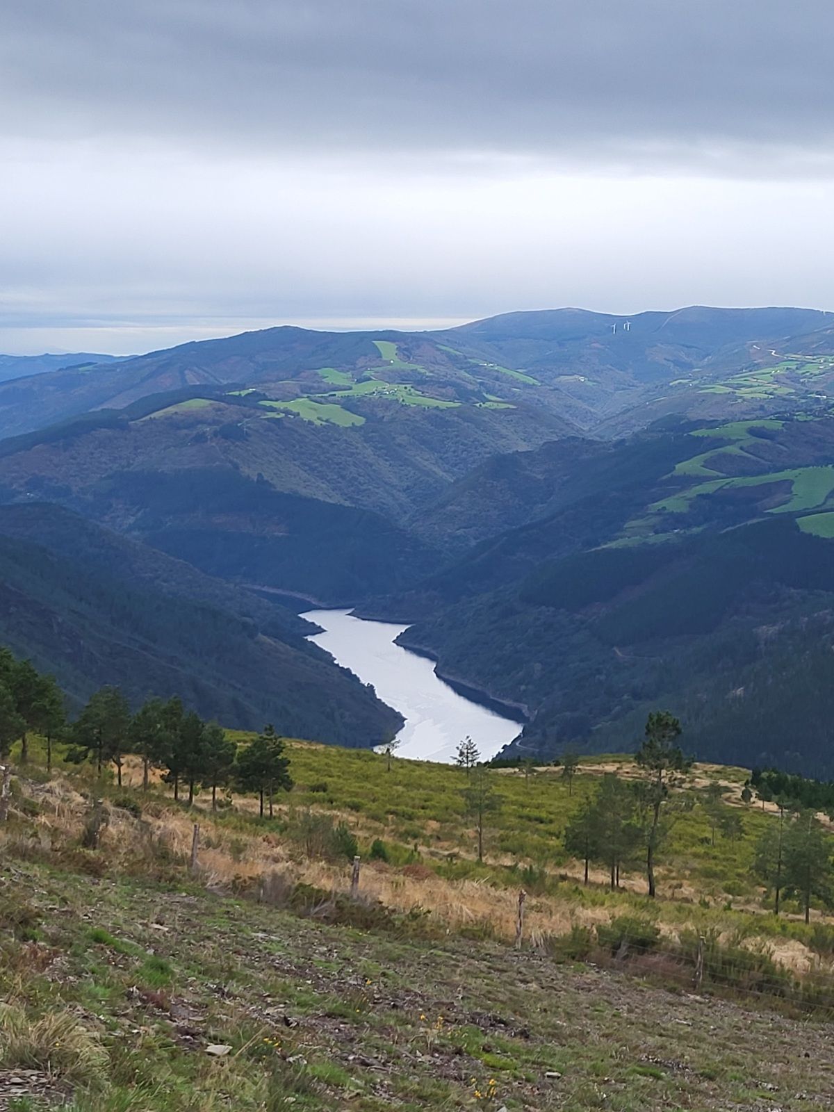 I also don’t like to give business advice, but here goes anyway. IF you are an entrepreneur, AND you like adventure travel, there is a need in Buspol. You could install a Zip Line from the spot of this picture down and across the valley and ending in downtown Grandas de Salime. This would reduce the time crossing the valley and eliminate potential knee damage on the downhill walk. If you do it, be sure to allow for ample breaking and have a soft landing zone for the Zip-Lining pilgrim.*