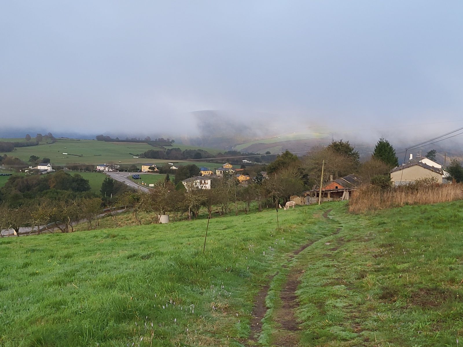 By the end of today’s walk, I’ll be halfway to Santiago! And another milestone, I’ll cross the border between Asturias and Galicia. No time for celebration, though, this day, like all others, begins with a big climb. And it was relentless, 13.8 kilometers, uphill all the way. After the pinnacle of the day (Alto de Acebo), it’s a series of smaller ups and downs (mostly down) to A Fonsagrada.